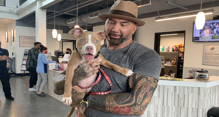After being adopted by the actor Dave Bautista, a 3-month-old pit bull puppy that had a rough start in life would never need for anything.
