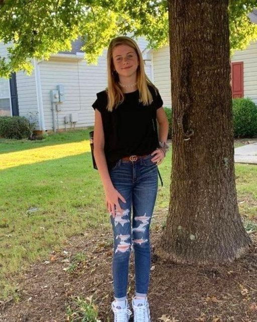 She and her mother went outdoors to snap a picture on the first day of seventh grade.