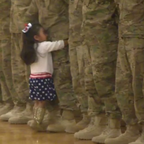 When it comes to love, rules simply lose their significance, particularly in the presence of loved ones. This sentiment was perfectly exemplified by two-year-old Karis Oglesby. Without a moment’s hesitation, she dashed out into the middle of an Army homecoming ceremony to greet her father, paying no heed to protocol. The ceremony took place at Fort Carson, Colorado, where Karis’s dad and his fellow soldiers stood shoulder to shoulder in formation.