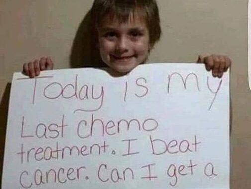 In this case, we see a little boy who wrote in his letter that he beat cancer and it was the last day of chemotherapy.