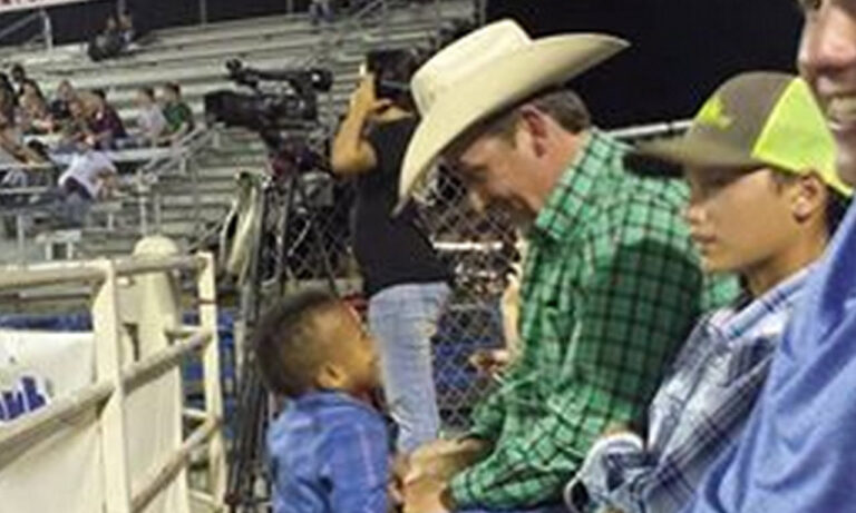 That man, who they later found out was Jason Taylor, welcomed the fact that Lincoln walked up to him. They started talking about the rodeo and it was something that took the family by surprise.