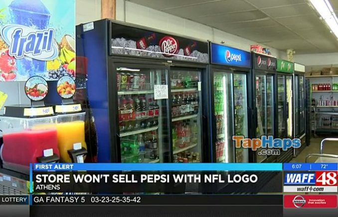 According to WAFF, Stewart announced on Facebook that he has officially banned certain Pepsi products from his supermarket because they contain the NFL logo on the label. The Athens store owner concluded that because Pepsi has decided to team up with a market that supports its employees disrespecting the American flag, National Anthem, and police officers, he will no longer offer their products.