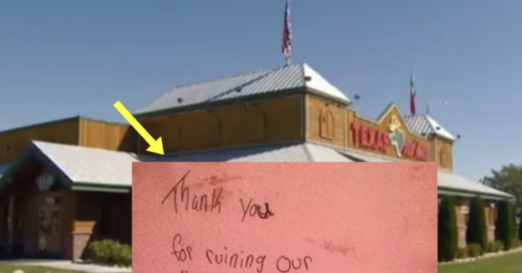 Katie Leach was excited to get out of the house for a family dinner at Texas Roadhouse. The popular chain of eaters is known for its fun environment that caters to families and other groups. However, Leach was shocked when other diners at the restaurant came over to her table and slapped down a note about how Leach’s 10-month-old son had “ruined” their dinner because the baby had been crying, yelling, and making a lot of noise.