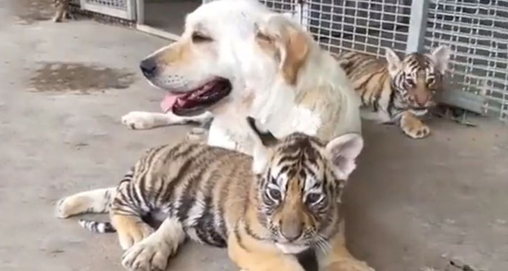 The video showcases the unusual bond between the dog and the tiger cubs. The Labrador Retriever has taken on the role of their mother, nurturing and protecting them as if they were her own. As the video went viral, people around the world were touched by the compassion and maternal instincts of the dog.