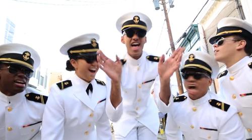 The savvy midshipmen managed to convince shopkeepers and locals to close off one street in Annapolis on a beautiful fall day. The street became the background for their entertaining music video. The team operated on a zero budget and did everything on their own, including the choreography and filming.