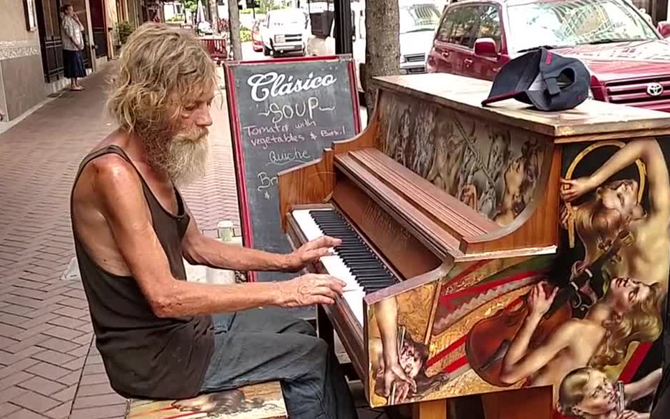 A homeless fifty-year-old musician walks up to the piano every day and plays wonders. His music touches the depths of the soul.